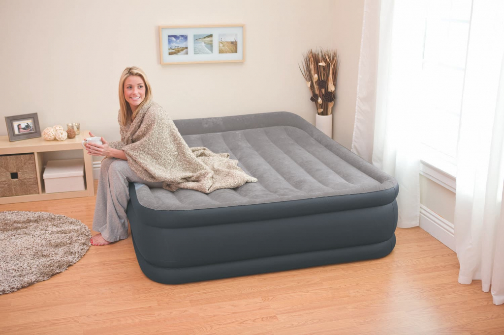 Встроенный электронасос позволяет быстро надувать и сдувать кровать и дает возможность отрегулировать ее упругость.